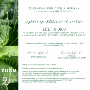 Zelinářská unie Čech a Moravy ve spolupráci se Zahradou Čech oznamuje konání 17. ročníku soutěže Zelí roku, která oceňuje nejlepší kysané zelí profesionálních výrobců z ČR.