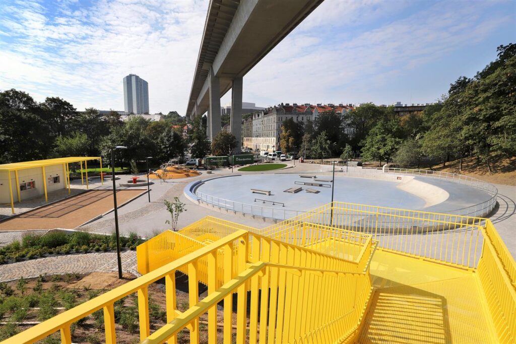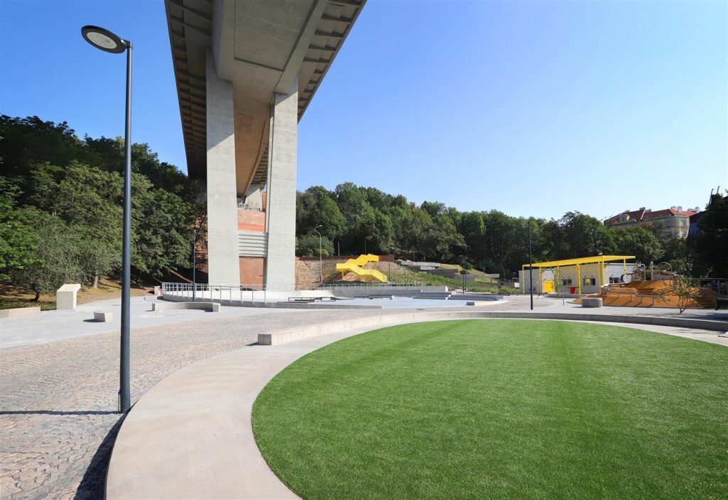 Východní část Folimanky a „plácek“ pod mostem, který dříve lidé jen rychle procházeli, se dnes proměnily v moderní multifunkční areál o rozloze přibližně 5000 m². Tím se završila dlouhodobá koncepce postupných úprav celého parku – od Sluneční stráně až po zelené plochy podél Novoměstských hradeb.
