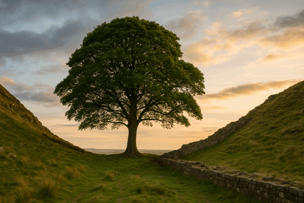 Sycamore Gap Tree, vysazený koncem 19. století, rostl mezi dvěma kopci přímo u Hadriánova valu, který je součástí seznamu UNESCO. Strom se stal celosvětově známým po roce 1991, kdy se objevil ve filmu Robin Hood: Král zbojníků s Kevinem Costnerem. Podle právničky Sarah Doddové jde o první případ ve Spojeném království, kdy byl za nelegální pokácení stromu udělen nepodmíněný trest odnětí svobody. Muži byli odsouzeni i za poškození zdi, kterou nechal postavit císař Hadrián v roce 122. Ač strom nepatřil k největším ani nejstarším v Británii, ceněný byl pro svou malebnou polohu. Odborníci jeho hodnotu vyčíslili na více než 620 000 liber (18,3 milionu Kč). Poškození zdi bylo odhadnuto na 1100 liber (32 400 Kč).